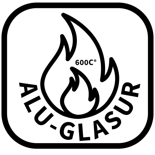 - Ab ca. 400 °C verdunstet das Bindemittel und die Aluminiumpigmente versintern mit dem Eisenuntergrund